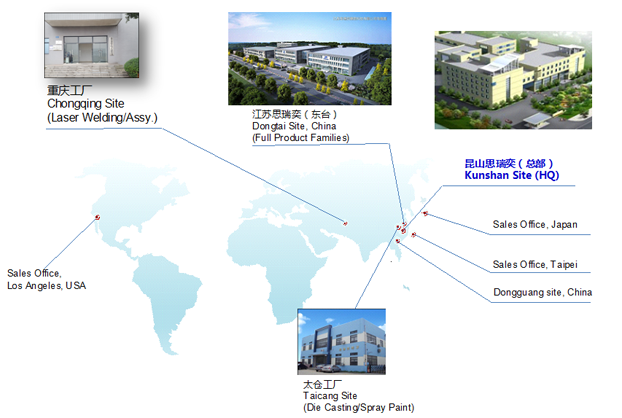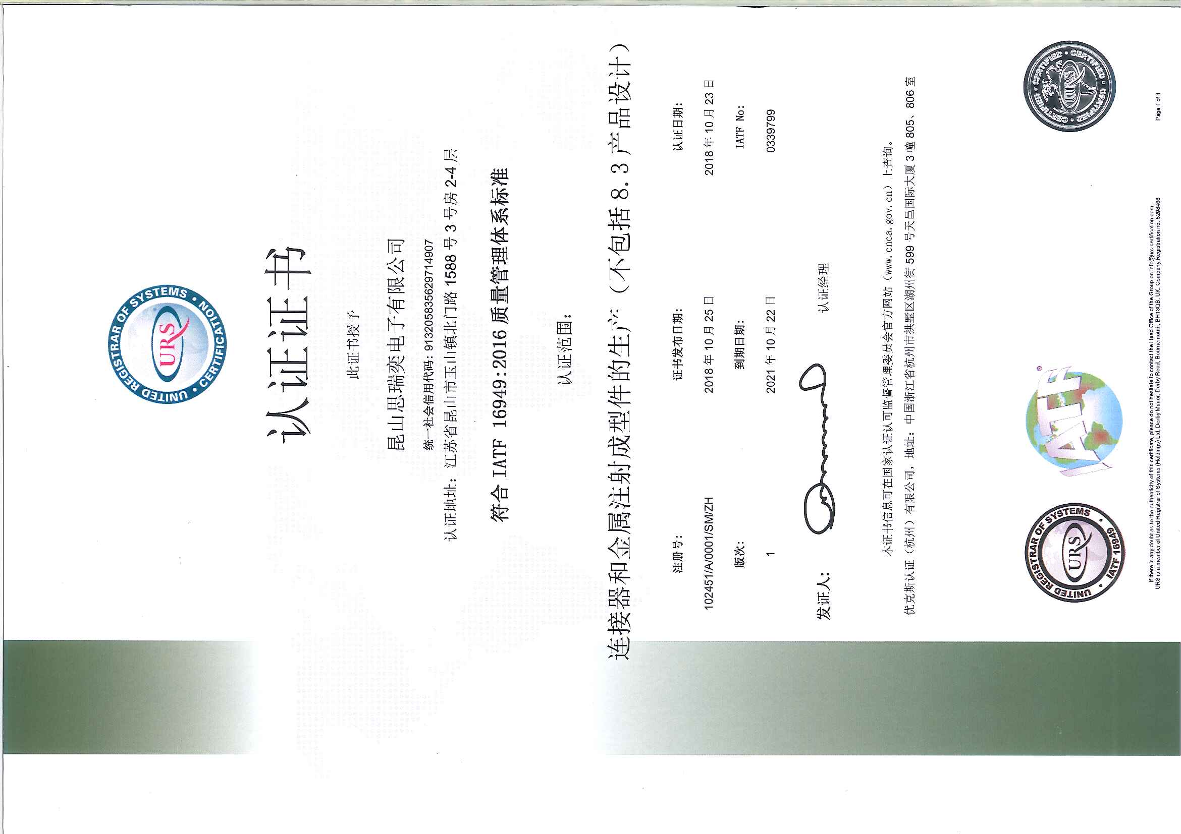 思瑞奕電子有限公司成立于2010年10月,注冊(cè)資金7500萬人民幣,總部位于江蘇省昆山市,在重慶、江蘇東臺(tái)、江蘇太倉設(shè)有分廠,公司于2011年通過ISO9001/ISO14001認(rèn)證,2013年通過高新技術(shù)企業(yè)和TS16949(IATF)體系認(rèn)定,2016年先后通過知識(shí)產(chǎn)權(quán)管理體系認(rèn)證、安全生產(chǎn)標(biāo)準(zhǔn)化認(rèn)證,2017年獲頒江蘇省民營(yíng)科技企業(yè)、2018年先后獲得蘇州市人民政府認(rèn)定企業(yè)技術(shù)中心、科技部認(rèn)定中小型科技企業(yè)、江蘇省最具成長(zhǎng)性高科技企業(yè)、2020年獲得江蘇省人民政府認(rèn)定企業(yè)技術(shù)中心、2021年獲得蘇州市瞪羚計(jì)劃入庫企業(yè)、江蘇省省級(jí)工程技術(shù)研究中心、江蘇省專精特新中小企業(yè)等榮譽(yù)稱號(hào)......